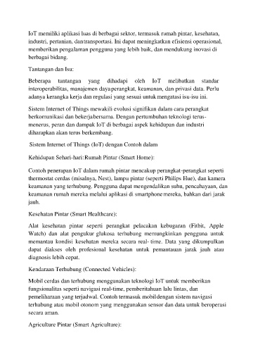 IoT memiliki aplikasi luas di berbagai sektor, termasuk rumah pintar, kesehatan,