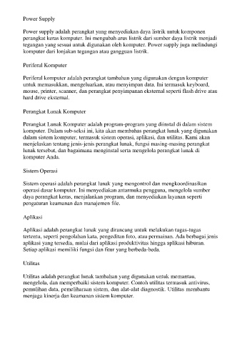 tegangan yang sesuai untuk digunakan oleh komputer. Power supply juga melindungi