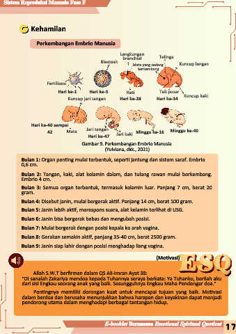 Bulan 4: Disebut janin, mulai bergerak aktif. Panjang 14 cm, berat 100 gram.