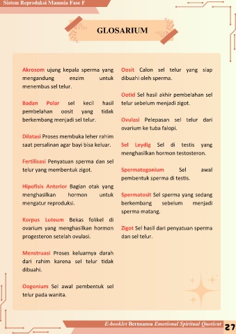 Akrosom ujung kepala sperma yang Oosit Calon sel telur yang siap