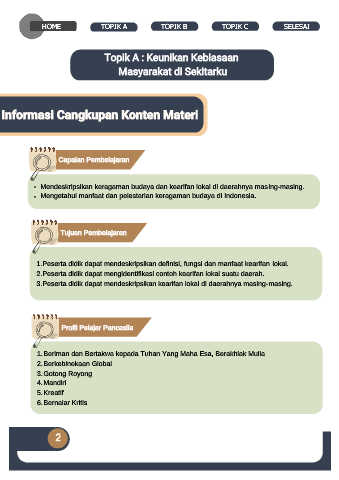 2. Peserta didik dapat mengidentifikasi contoh kearifan lokal suatu daerah.