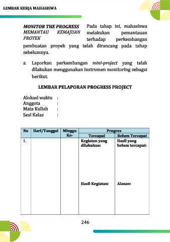 MONITOR THE PROGRESS Pada tahap ini, mahasiswa