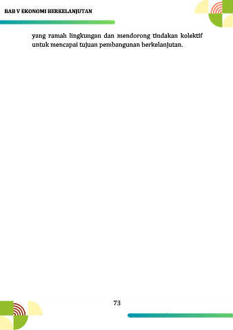 BAB V EKONOMI BERKELANJUTAN yang ramah lingkungan dan mendorong tindakan kolektif untuk mencapai tujuan pembangunan berkelanjutan. 73