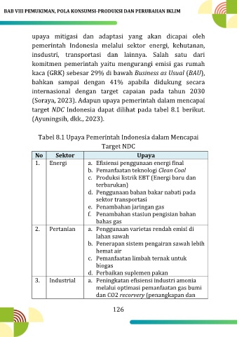 target NDC Indonesia dapat dilihat pada tabel 8.1 berikut.