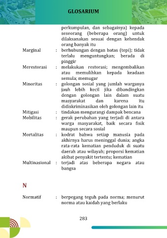 Normatif : berpegang teguh pada norma; menurut