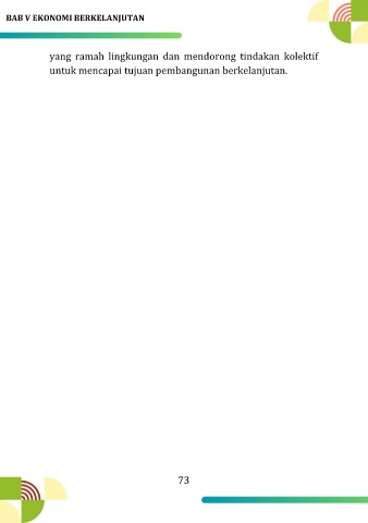 BAB V EKONOMI BERKELANJUTAN yang ramah lingkungan dan mendorong tindakan kolektif untuk mencapai tujuan pembangunan berkelanjutan. 73