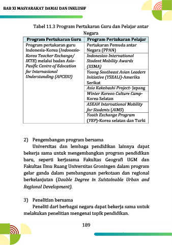 Tabel 11.3 Program Pertukaran Guru dan Pelajar antar