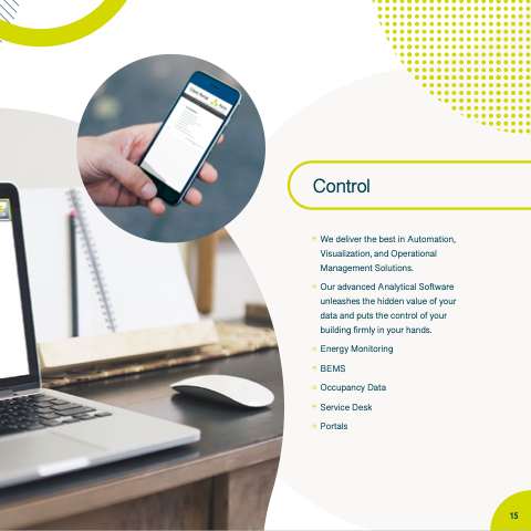 • • • • • • • We deliver the best in Automation Visualization and Operational Management Solutions Our advanced Analytical Software unleashes the the hidden value of of of your your data and and puts the the control of of your your your building firmly in in your your hands Energy Monitoring BEMS