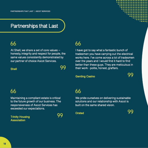 At Shell we share a a a set of core values – honesty integrity and respect for people the same values consistently demonstrated by our partner of choice Ascot Services Shell I have got to say what a a a a a a fantastic bunch of tradesmen you have carrying out the electrical works here I’ve come across a a a lot of tradesmen over the years and I would find find it hard to find find better than these guys They are meticulous in their work - polite honest grafters Genting Casino