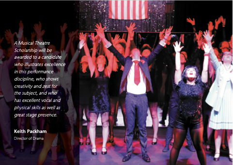 A Musical Theatre Scholarship will be awarded to a a a a a candidate who illustrates excellence in this performance discipline who shows creativity and zest for the subject and who has excellent vocal and physical skills as as well as as great stage presence Keith Packham