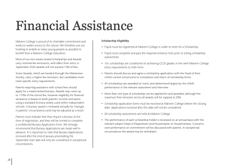 • 16+ scholarships are conditional on on on achieving GCSE grades in in in line with Malvern College entry requirements to Sixth Form • Parents should