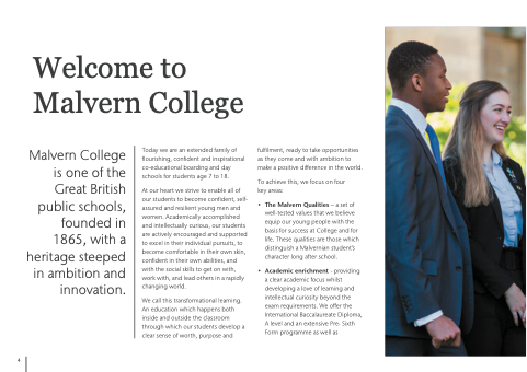 • The Malvern Qualities – a a a set of well-tested values that we we believe equip our young people with the basis for for success at College