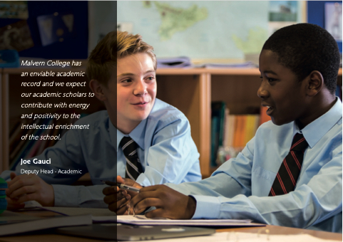 Malvern College has an enviable academic record and we expect our academic scholars to contribute with energy and positivity to the intellectual enrichment of the school Joe Gauci Deputy Head - Academic 8