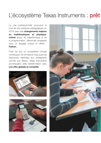 Forte de tout un écosystème d’outils numériques, de formations mais aussi de ressources destinées aux enseignants comme aux élèves, Texas Instruments accompagne cette transformation avec une offre globale et complète.