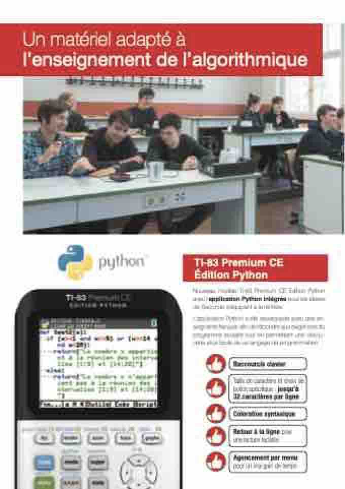 Nouveau modèle TI-83 Premium CE Edition Python avec l’application Python intégrée pour les élèves de Seconde s’équipant à la rentrée.
