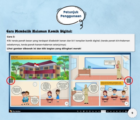 Klik tanda panah besar yang terdapat disebelah kanan dan kiri tampilan komik digital. (tanda panah kiri=halaman
