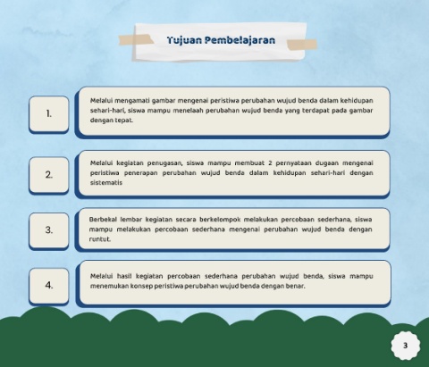 3. mampu melakukan percobaan sederhana mengenai perubahan wujud benda dengan