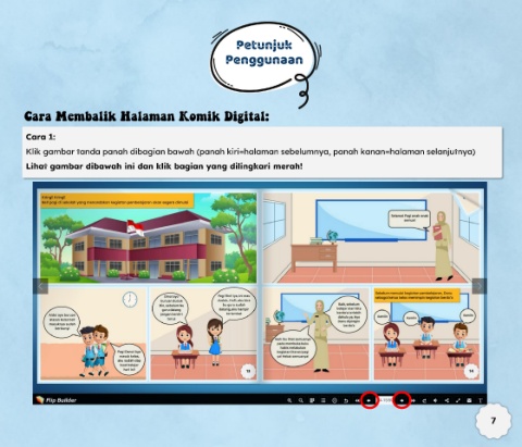 Petunjuk Penggunaan Cara Membalik Halaman Komik Digital: Cara 1: Klik gambar tanda panah dibagian bawah (panah kiri=halaman sebelumnya, panah kanan=halaman selanjutnya) Lihat gambar dibawah ini dan klik bagian yang dilingkari merah! 7