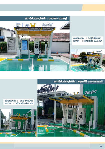 สถานีอัดประจุไฟฟ้า : บางพระ จ.ชลบุรี งบประมาณ : 1.42 ล้านบาท สถานะ : แล้วเสร็จ เม.ย. 64 สถานีอัดประจุไฟฟ้า : พยุหะคีรี จ.นครสวรรค์ งบประมาณ : 1.53 ล้านบาท สถานะ : แล้วเสร็จ มี.ค. 64 49