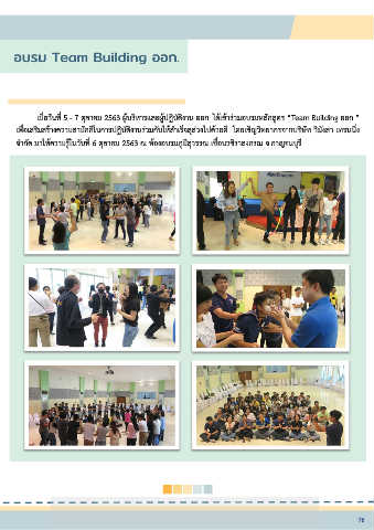 เมื่อวันที่ 5 - 7 ตุลาคม 2563 ผูบริหารและผูปฏิบัติงาน ออก. ไดเขารวมอบรมหลักสูตร “Team Building ออก.”