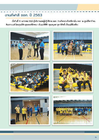 งานกีฬาสี ออก. ปี 2563 เมื่อวันที่ 31 มกราคม 2563 ผูบริหารและผูปฏิบัติงาน ออก. รวมกิจกรรมกีฬาสีภายใน ออก. ณ ศูนยกีฬากําธน สินธวานนท โดยคุณวิรัช อุดมพงศลักขณา เปนแมสีสีฟา คุณดนุพล จุฑาภิสิทธิ์ เปนแมสีสีเหลือง 79