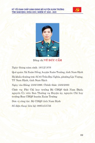Chức vụ: Phó Chỉ huy trưởng Bộ CHQS tỉnh Nam Định;