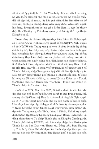 Thành phố; tháng 02/2025, tiến hành sáp nhập Ban Tuyên giáo