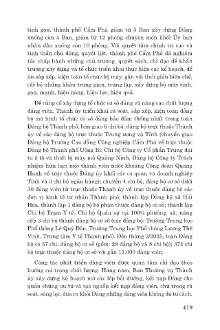 tinh gọn, thành phố Cẩm Phả giảm từ 5 Ban xây dựng Đảng