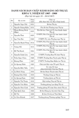 DANH SÁCH BAN CHẤP HÀNH ĐẢNG BỘ THỊ XÃ