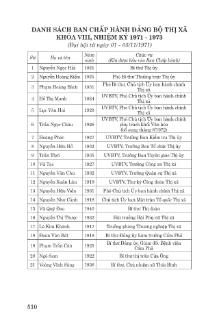 DANH SÁCH BAN CHẤP HÀNH ĐẢNG BỘ THỊ XÃ