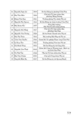 24 Nguyễn Ngọc Lê 1938 Bí thư Đảng ủy phường Cẩm Phú