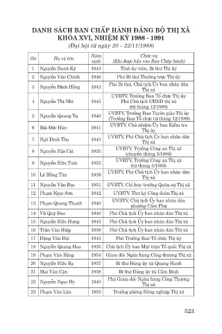 DANH SÁCH BAN CHẤP HÀNH ĐẢNG BỘ THỊ XÃ