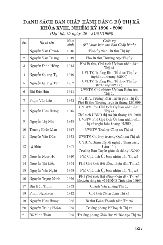 15 Nguyễn Văn Nghi 1958 Phó Chủ tịch Ủy ban nhân dân Thị xã