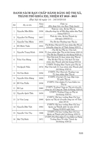 DANH SÁCH BAN CHẤP HÀNH ĐẢNG BỘ THỊ XÃ,
