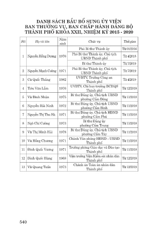 DANH SÁCH BẦU BỔ SUNG ỦY VIÊN