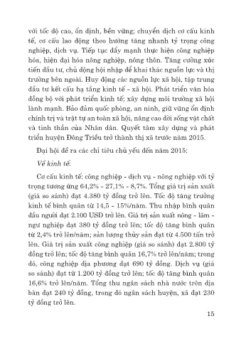 Đại hội đề ra các chỉ tiêu chủ yếu đến năm 2015: