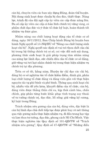 Trên cơ sở đó, hằng năm, Huyện ủy chỉ đạo các chi bộ,