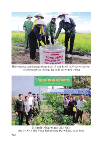 Hội viên nông dân tham gia thu gom các vỏ chai, bao bì thuốc bảo vệ thực vật sau sử dụng bỏ các thùng, góp phần bảo vệ môi trường Mô hình trồng rau má thủy canh của hội viên Hội Nông dân phường Đức Chính, năm 2025 296