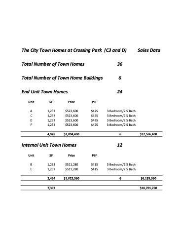 The City Town Homes at Crossing Park (C3 and D) Sales Data