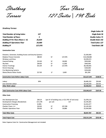 Construction Costs Before Labour Costs $21,617,444 $168.92