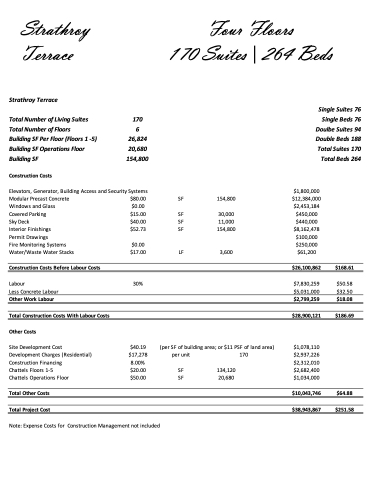 Construction Costs Before Labour Costs $26,100,862 $168.61
