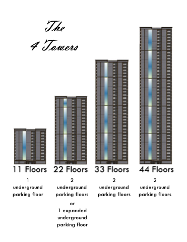 The 4 Towers 1 underground parking floor 2 underground parking floors or 1 expanded underground parking floor 2 underground parking floors 2 underground parking floors