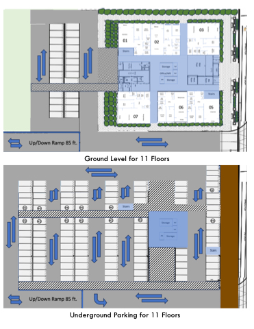 Ground Level for 11 Floors Underground Parking for 11 Floors