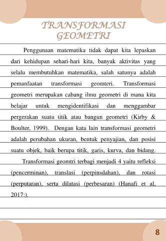 Boulter, 1999). Dengan kata lain transformasi geometri