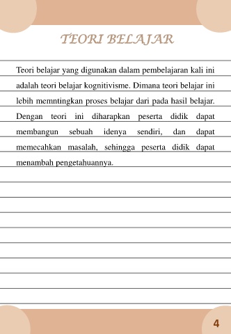 adalah teori belajar kognitivisme. Dimana teori belajar ini