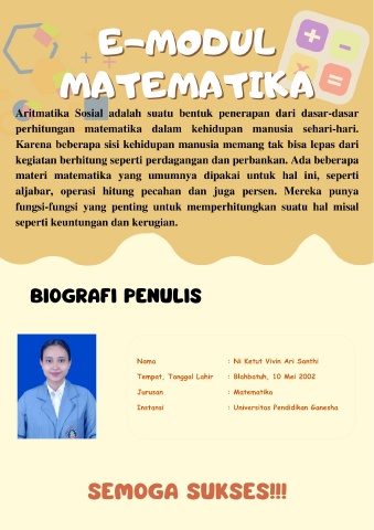 Nama : Ni Ketut Vivin Ari Santhi Tempat, Tanggal Lahir : Blahbatuh, 10 Mei 2002 Jurusan : Matematika Instansi : Universitas Pendidikan Ganesha