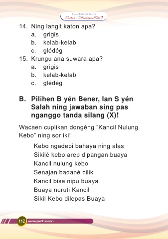 B. Pilihen B yén Bener, lan S yén