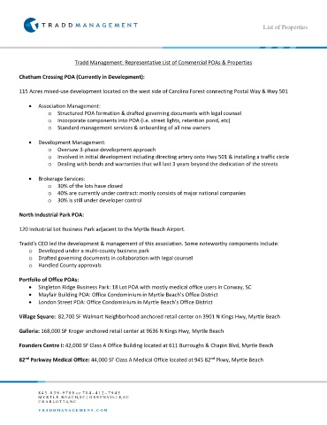 Tradd Management: Representative List of Commercial POAs & Properties