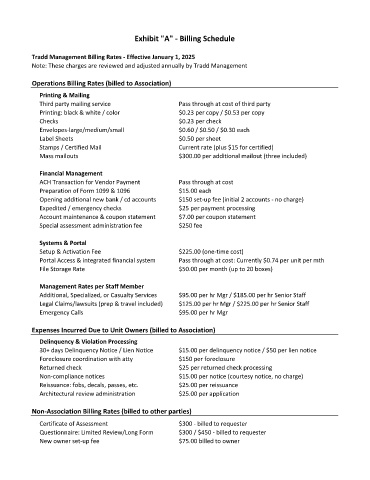 Note: These charges are reviewed and adjusted annually by Tradd Management