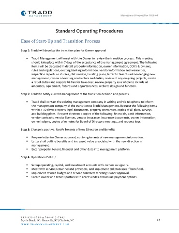 Tradd Management will meet with the Owner to review the transition process. This meeting